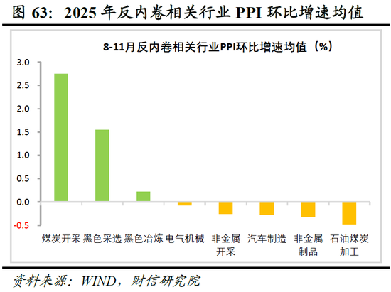 一是预计PPI翘尾因素拖累大幅减弱。首先,根据2025年环比走势测算,2026年PPI翘尾因素约为-0.4%,较2025年收窄0.7个百分点。其次,其影响呈“前低后高”走势,上半年对同比增速仍有拖累,但下半年将转为正向支撑(见图60)。